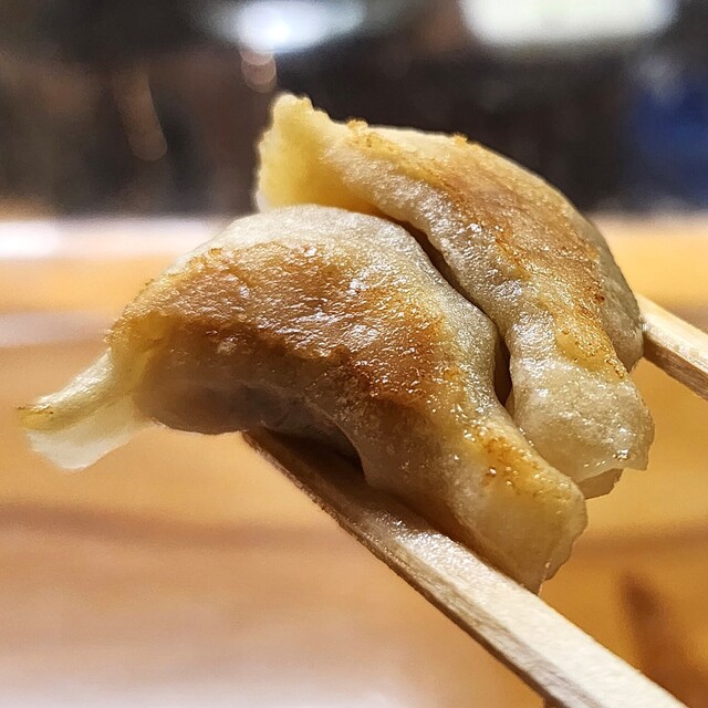 注文が入ってから、餃子の皮を伸ばし、餡を包んで、焼...