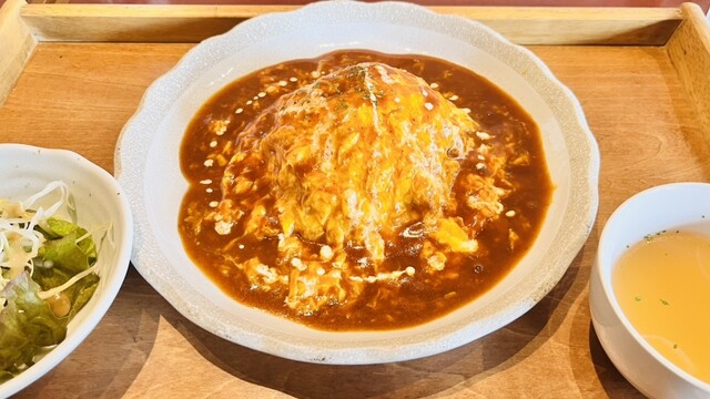 休日のランチで訪問しました。 店内はテーブルが5つでこじんまりした様子です。 オムライスは写真だけで、食べてません。 中身はチキンライスのようでした。 私は豚角煮風トントロ... 詳細を見る