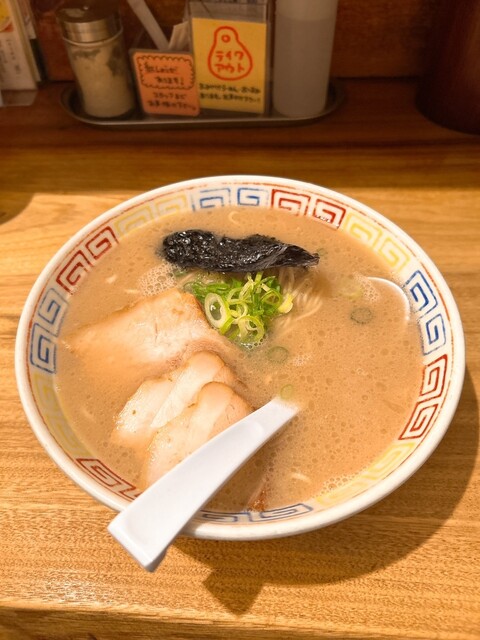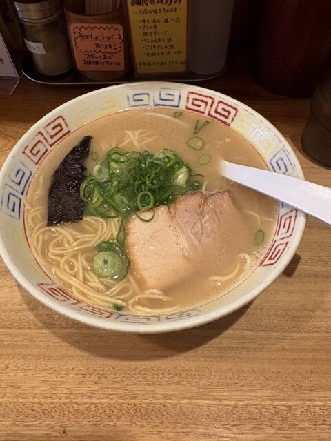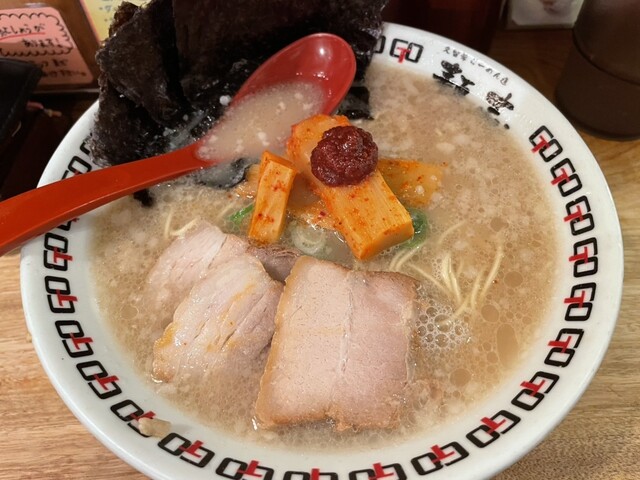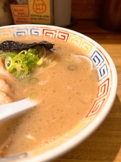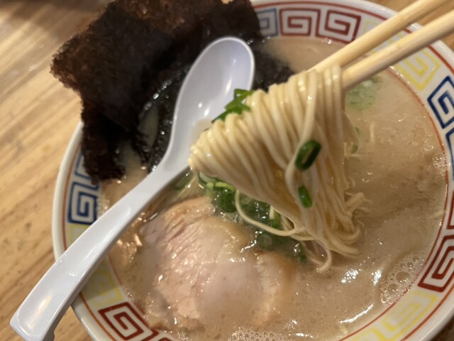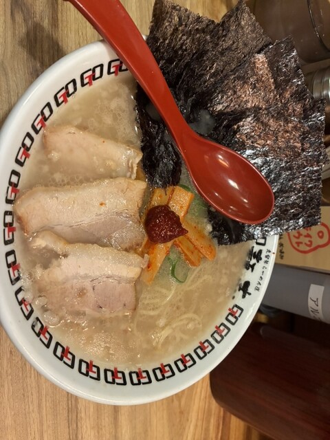 最初の一口スープを飲んで美味しい豚骨ラーメンと確信