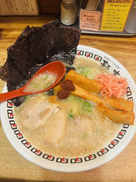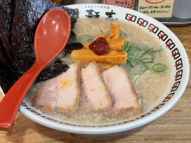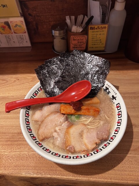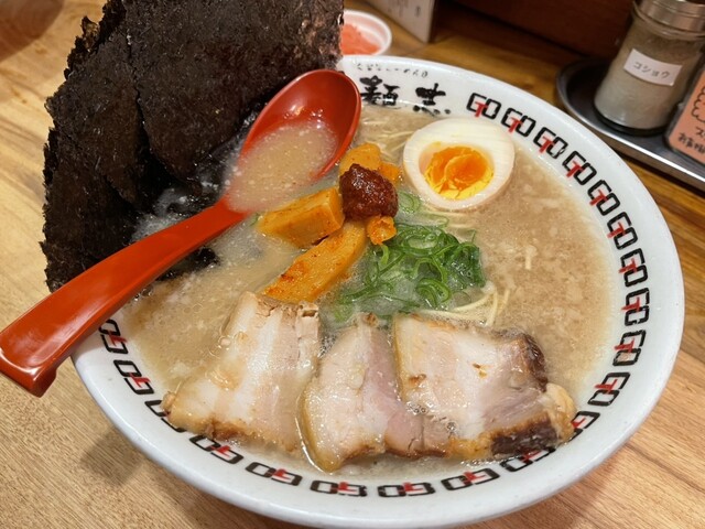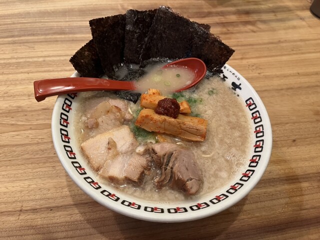福岡県産ラー麦使用。自社工場製麺。久留米の呼び戻しと福岡の取切を融合した豚骨100%スープ