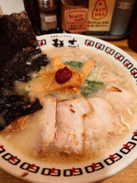 西鉄久留米駅から徒歩約2分、一番街の入口に店を構える当店は、久留米の人気豚骨ラーメン店。