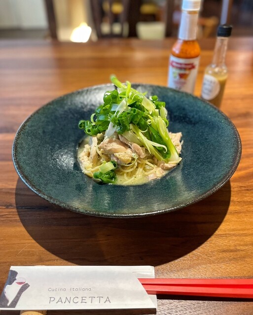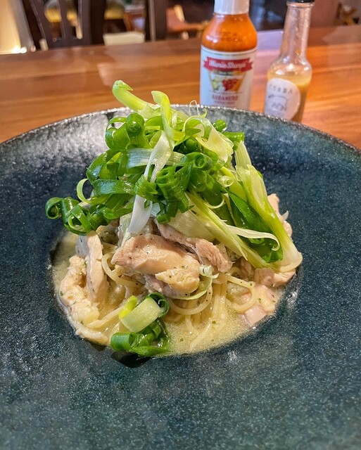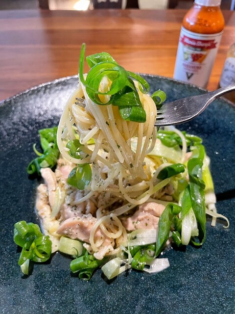 古処鶏と空飛ぶネギのペペロンチーノ1500円
