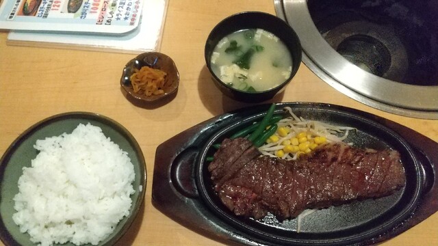 さがりステーキ定食¥1,350 ロースステーキ定食¥1,400 お安い!(^-^) 岩塩他 調味料が置いてあるので 色々と楽しめます♪ カウンターには常連さんが楽しそうに... 詳細を見る