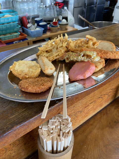 ②天ぷらはテーブルに皿に盛ってあり選べる。精算は自己申告。