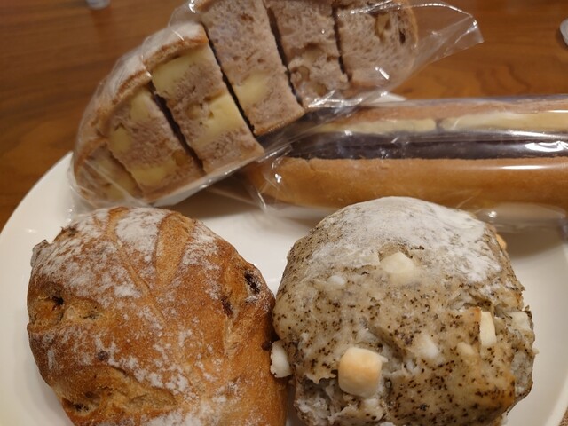 塩パン、あんバター、ゴロゴロくるみ、ミルクティー、くるみチーズ、焼きドーナツを購入。