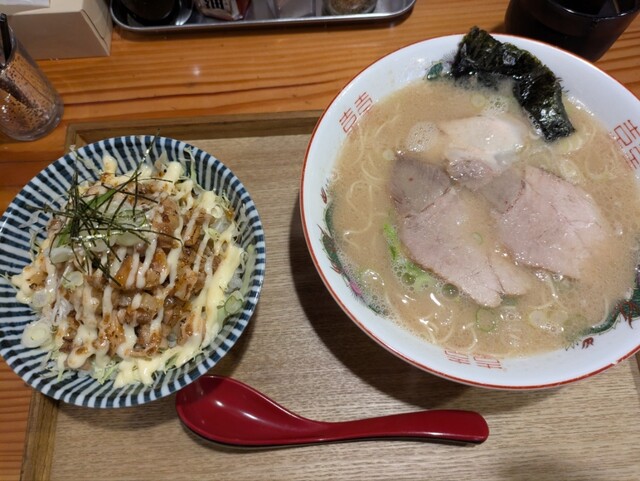 ラーメン+やみつきからあげ丼で900円。
