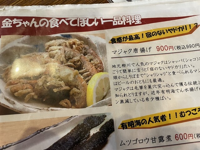 有明の新鮮で珍しい魚介類が、体験できる稀有でおすすめなお店。