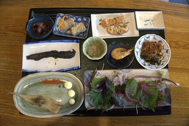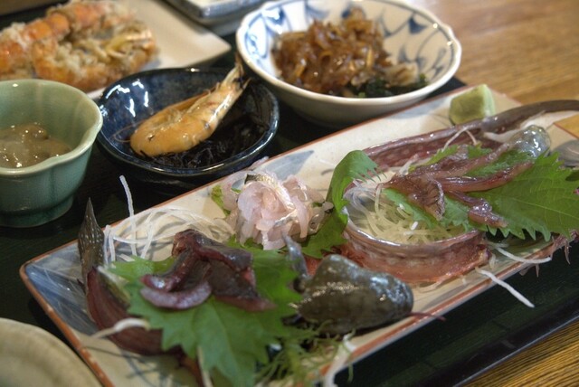クッゾコの煮付け、ワケノシンノスの味噌煮、エツの酢漬け、子持ちイイダコ、ワタリガニなどなど・・・。有明海・柳川の郷土料理が食べられるお店です。魚屋併設だからこそ味わえる新鮮さ・珍しさでご高評いただいております。旬鮮刺身・活魚料理に自信あり。イケスのお魚もその場で調理いたします。 |