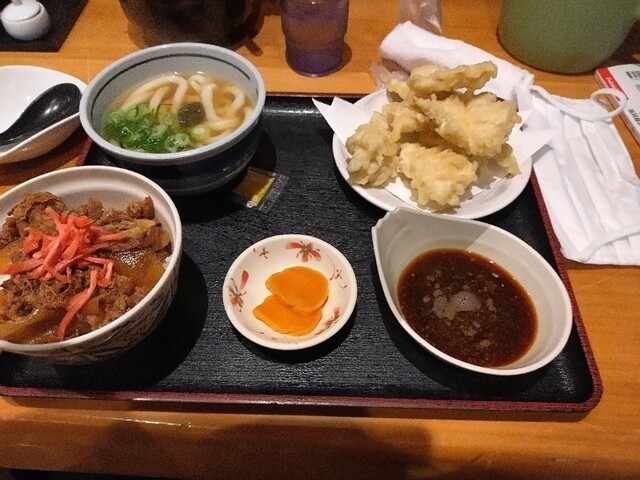 ごぼう天うどん(560円)をネギ抜きで、また牛めし(400円)も頼みまし...
