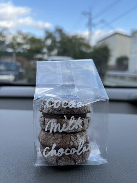 クッキーでチョコレートを挟んでおり、店内の冷蔵庫の中で販売され...