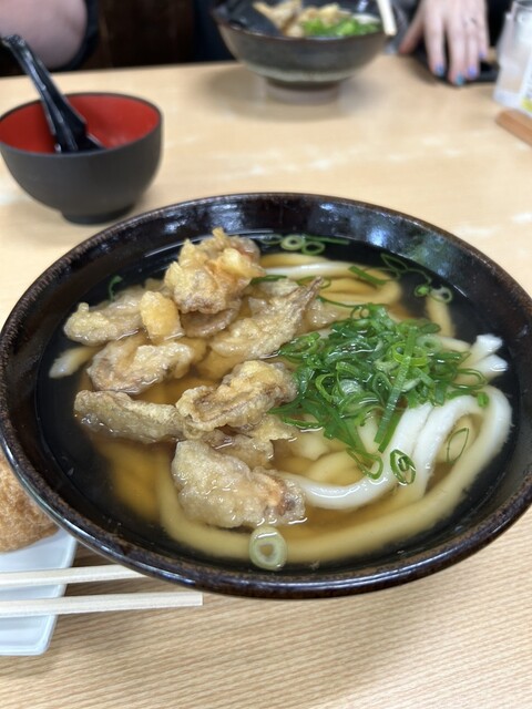 大牟田で知らない人はいないであろう、 超有名うどん屋さん。 当然存在は知ってましたが、 ついつい後回しにしてしまってて初訪問。 休日の16時頃の中途半端な時間だったので、 比較的空いてました。 注文は、肉うどんと炊き込みごはん。 2分くらいで到着しました。 柔らかくて... 詳細を見る