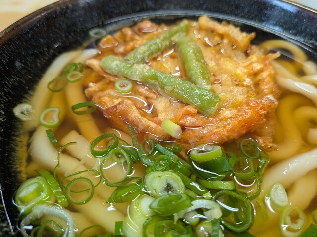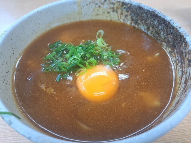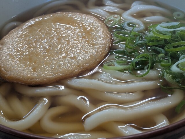 うどんは太めでモチモチしており、味付けに負けることなく調和し食べ応えがある...