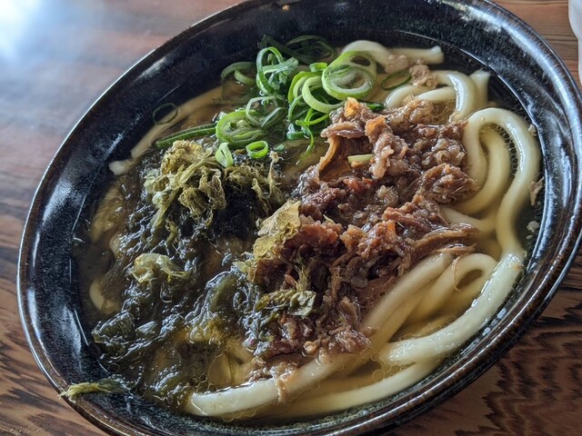 休日の12時にお連れさんと2人で駐車場へ。 意外とすんなり駐車できたのですが、待ち客は50人ほどで列になってます。 でも、回転が早いのを知っているので苦になりません。 20分ほど待ってカウンター席に腰かけて肉うどん460円、お連れさんはえび天うどん460円を注文。 家族連れの方はテーブル席が... 詳細を見る