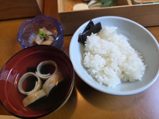小鉢セットとお吸い物、ご飯。