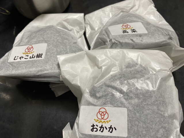 みやま道の駅の手結び屋さんにランチ用のおにぎりを買いに行きました。種類も多く何よりお米が美味しいです。今回は梅ひじきと一番シンプルな塩握りです。お米はややかために炊いてありますがそれがほどよいかたさで...