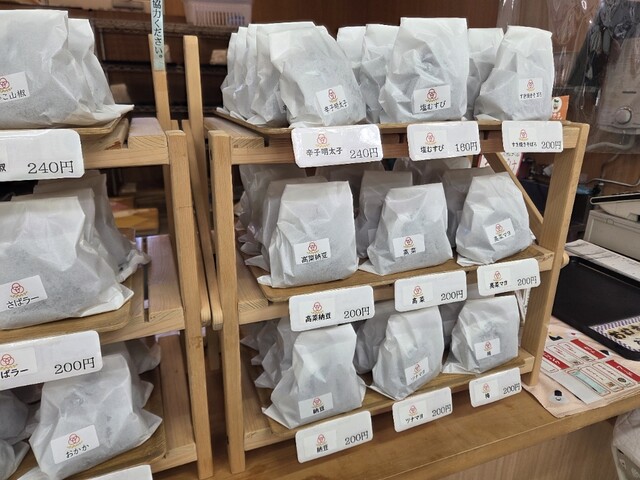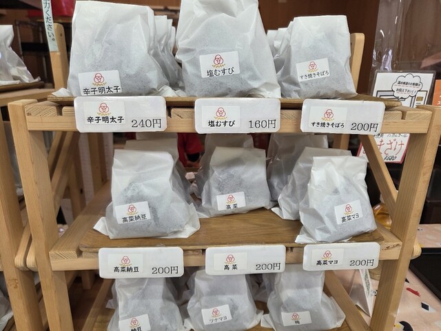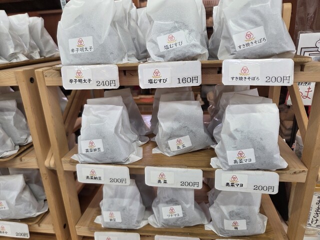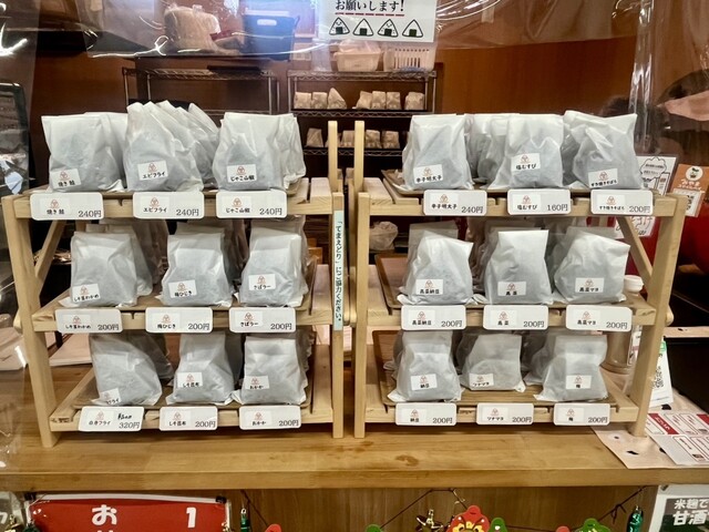 店頭にはさまざまな種類が並び、どれも魅力的。今回は「おかか」と「梅ひじき」を購入しました。1個200円という手頃な価...