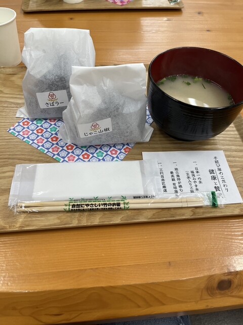 みやま道の駅のフードコートにある松尾米穀店手結び屋さんのお握りは、本当に美味しいです。お米が美味しく握りかたと塩加減が最高です。ジヤコ山椒やさばラーなども美味しいですが、一番のオシは、きざみわさび×わ...