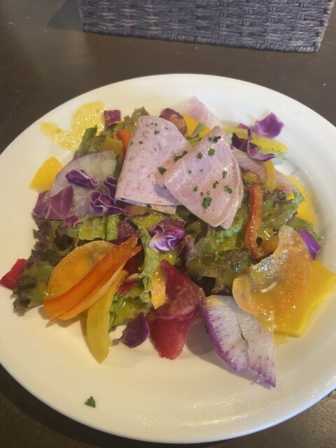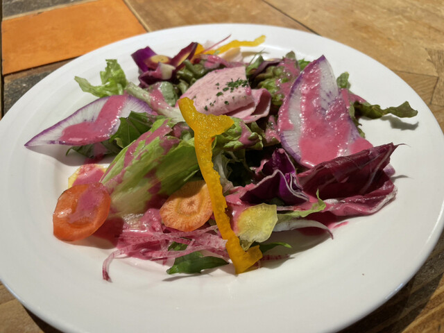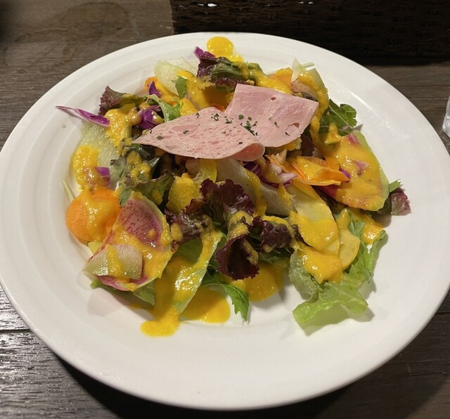 地元糸島の野菜と糸島の手造りハムを豊富に使った料理を楽しめます!木のぬくもりを感じられるログハウスのレストランで、テラスはペットと一緒にお食事も!ほどよく脂が乗った糸島牛は、口に入れた時の歯触りがとても柔らかく、何度も食べたくなる一品!サプライズバースデープレートは500円で承っております!デートにもオススメ♪是非一度お越し下さい♪