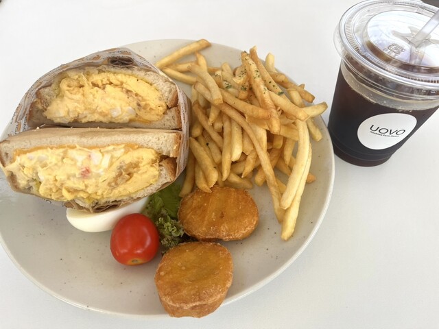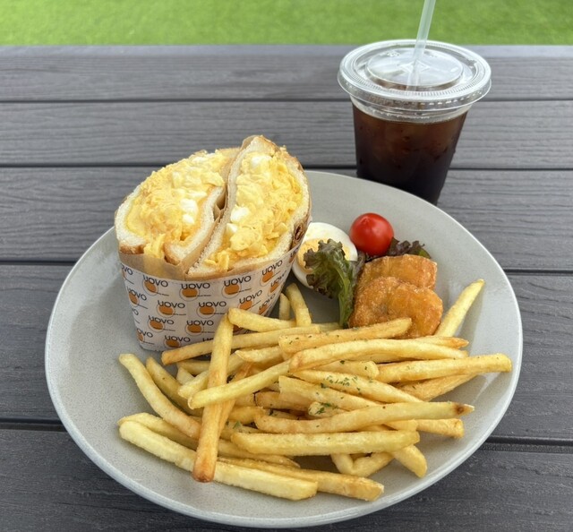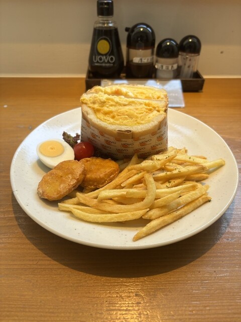 休日の遅めのお昼に訪問。遅めの時間のこともあり店内に座ることができた。たまごサンドとフライドポテトのセットを注文。たまごサンドは注文してから作るために美味しくいただける。観光地価格で少し高めの価格設定...