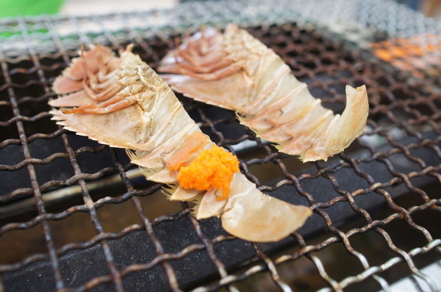 [2014.03]うちわ海老、1匹500円程度。半分に切って焼きます。