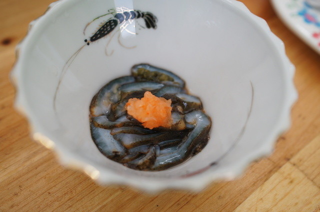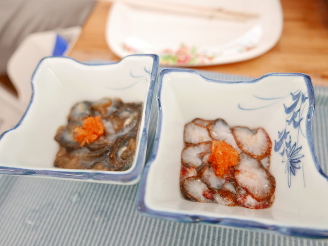 [2014.03]ナマコ酢はサービス。その日初めてのお客さまだからだそう。