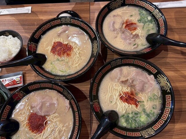 一蘭を食べる予定はなかったが工場を見学したところ、西日本に出荷される一蘭の麺などは全てこの工場からできているとのことでしたので記念に食べようとなり入店。