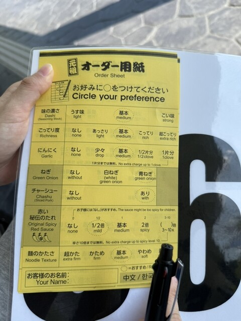 急いで並んで、注文用紙を記入しま...