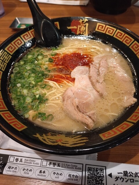 味は安定の一蘭の味でしたが、店内の雰囲気が通常店舗とは異なっててよかったです!