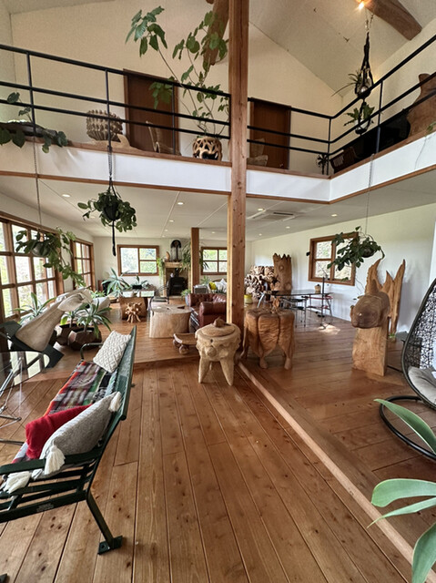 森の中の一軒家カフェ【Pinot・Gris】。エビとチキンの旨味がグッとくる『グリーンカレー』や季節のフルーツのオープンサンド、甘すぎない大人のパフェたち。「ピノグリ」とは、フランスではよく知られた白ワイン用ブドウの品種。以前、ブドウ畑だったこともあり、命名されたとか。店内はギャラリーを兼ねており、木彫作家であるご主人作のオブジェたちが心を癒してくれます。海とは違う糸島の景観もピノグリのご馳走です