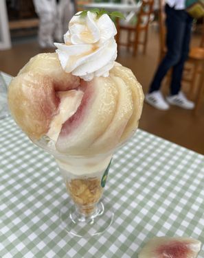 ずーっと前から食べたかった【ももパフェ800円】を食べました‼︎ まるせい果樹園直営のカフェです。採れたての季節のフルーツをふんだんに使用したパフェやスイーツが食べられます。オープンテラスもおすすめです。 かずちゃん直売所から徒歩3分ほど。果樹園の敷地内にあります。駐車場完備です。 (まるせい... 詳細を見る