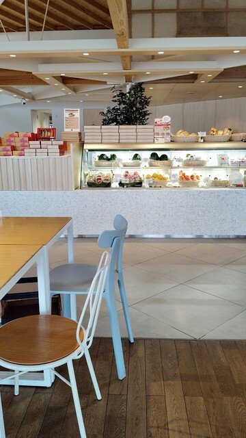 フルーツ専門店フルーツメニュー様々でフルーツが食べたくなったら、テイクアウトメニューから果物も購入可、イートインカフェも落ち着いた雰囲気