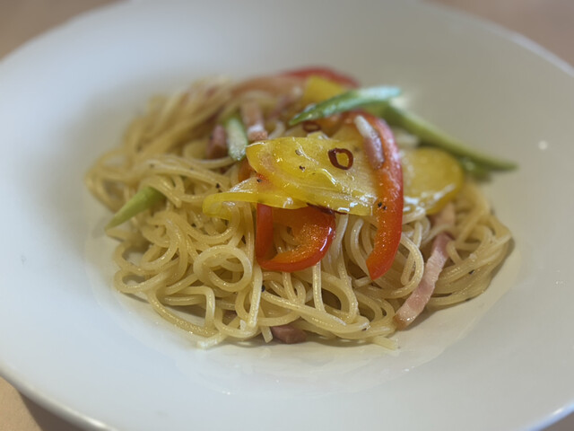 私はトマトとバジルのカッペリーニセット、母は果物屋さんのフルーツカッペリ...