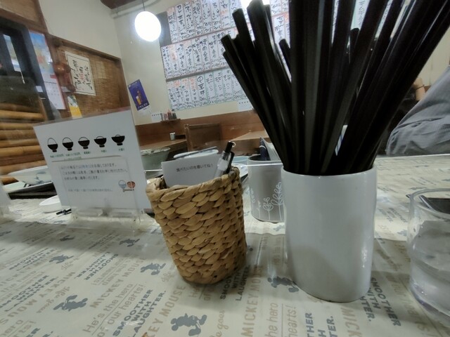 テーブル上の紙に注文品を書いて渡すシステム
