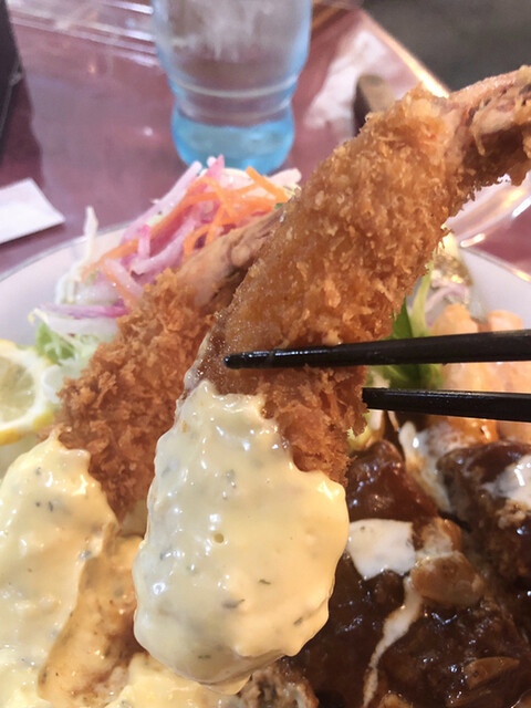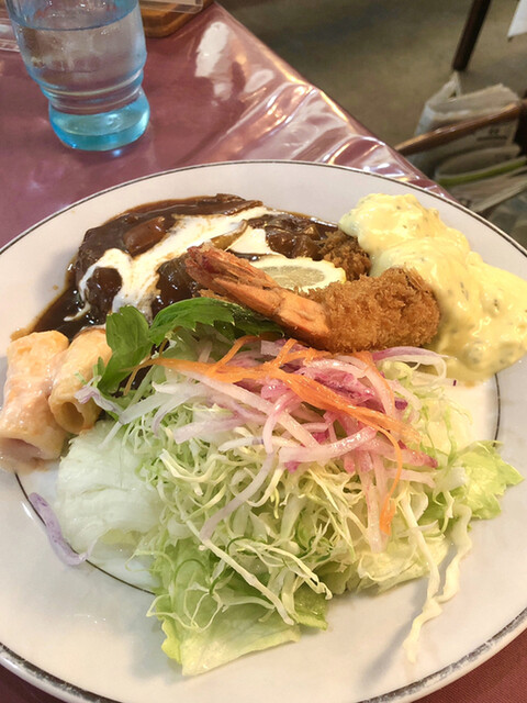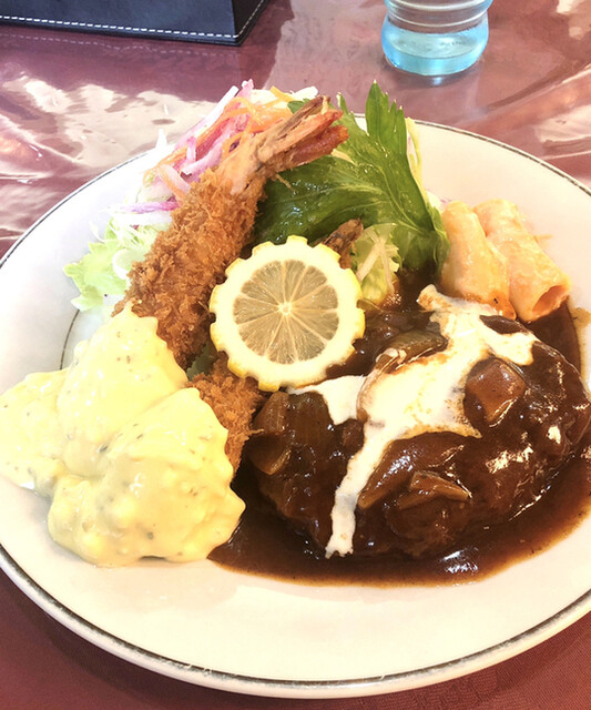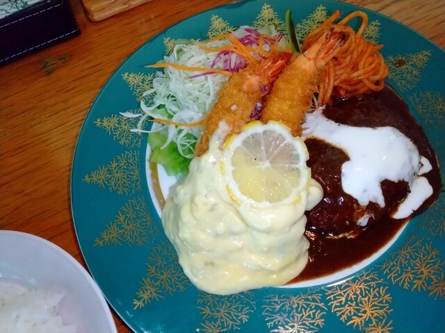 注文は「海老フライとハンバーグ盛合せ(ライス付)」
