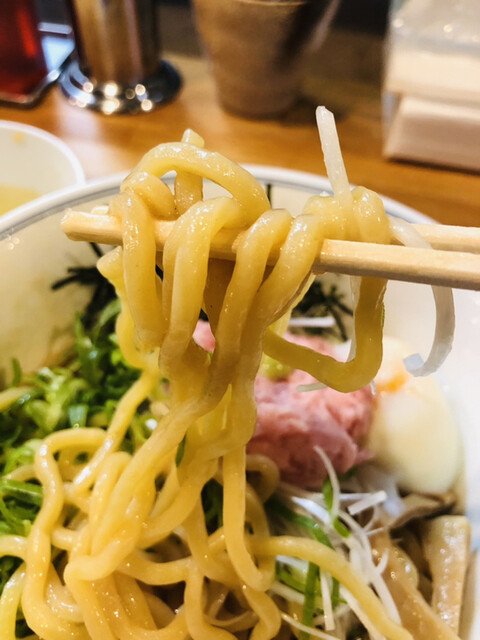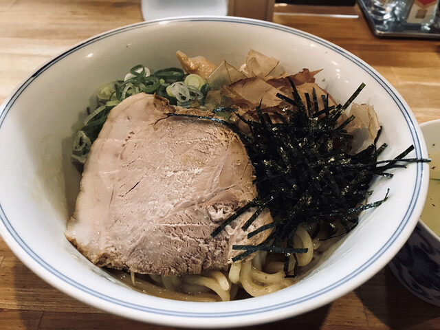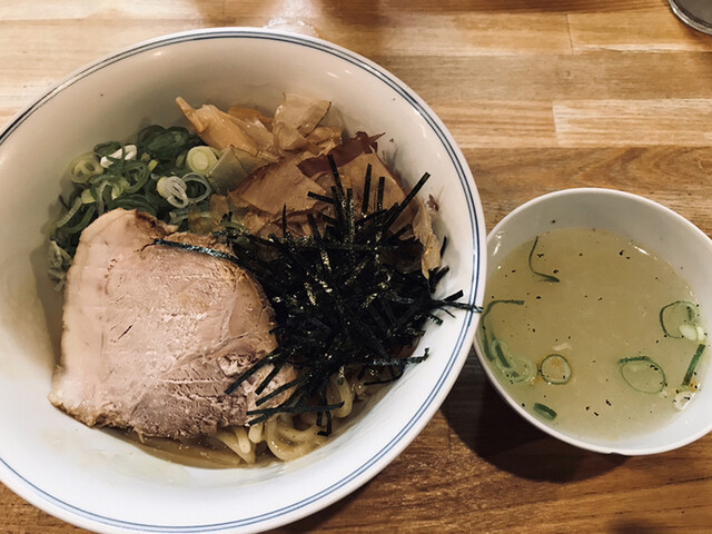 節系和風まぜそば 節系まぜそばの大盛を注文したわ! 丼の2/3を占めるくらいの巨大なチャーシューが乗っているわね! 麺はうどんのような極太麺で、ごわごわとした硬めの食感だったわ!しっかりととろみのあるタレを全身に絡め取るっていたわ! タレは魚介豚骨ベースのとろみのあるものだったわ!鰹節がかけ... 続きを読む»
