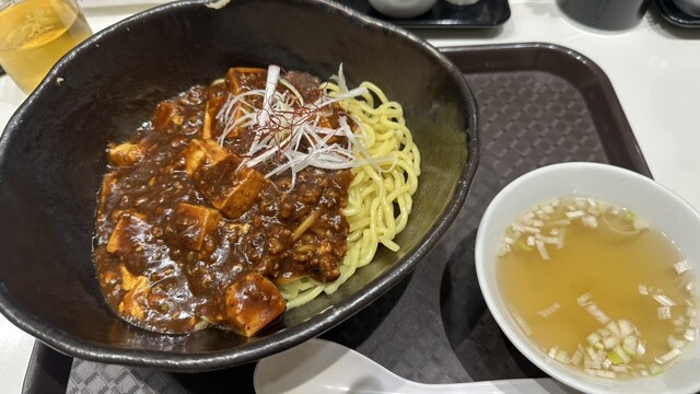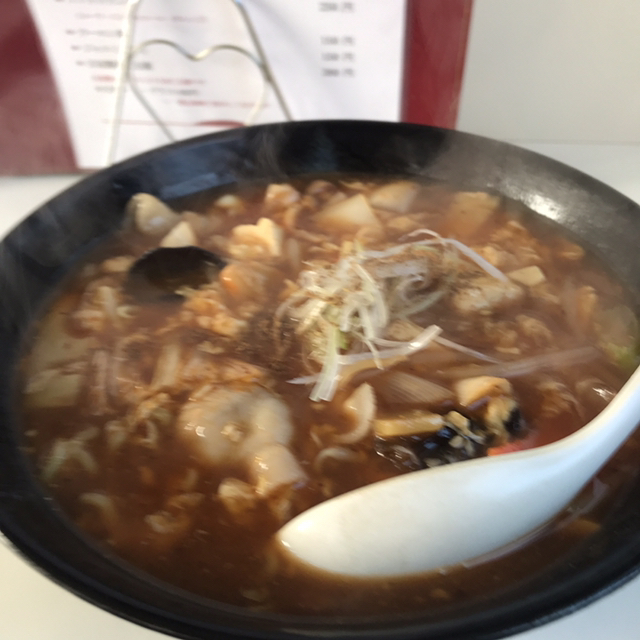 甘辛い分速麻婆豆腐のような餡掛けがかかった麺。