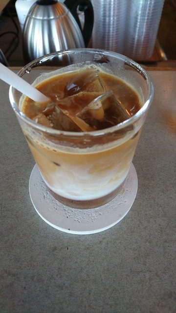 コーヒースタンドなので、テイクアウトもできるし、中で頼んで味わうこともできます。エチオピア580円を店内でいただくことにします。5分ほど待って供されたのは...