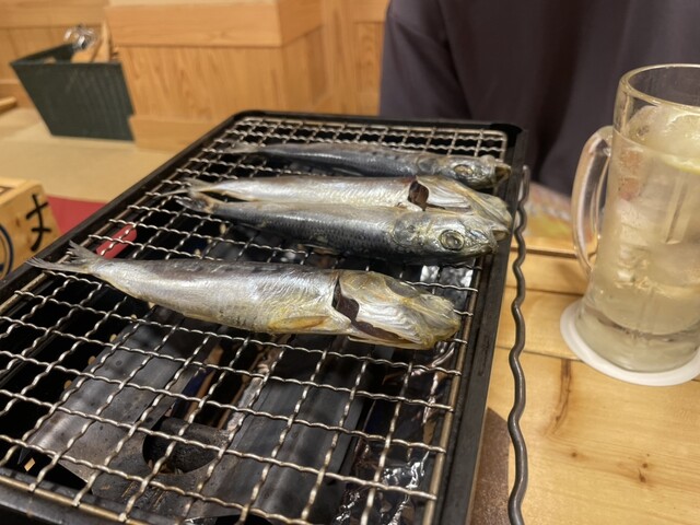 お通しが、網焼きコンロで焼くイワシでした!