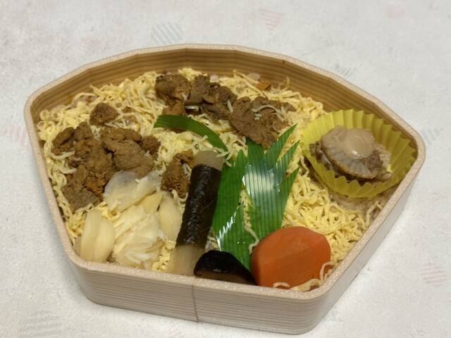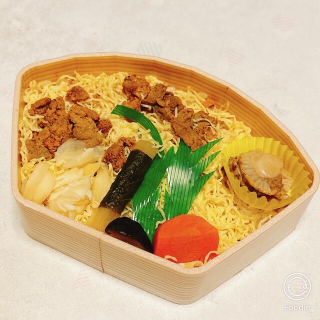 いわき郷土料理"うに貝焼き"と"蒸しウニ"の製法の違うウニを両方楽しめる贅沢な駅弁。もぅ一目見て"うに貝焼き"という単語にヤられた。お値段もイイですよ、1400円だったかな。