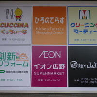 公共商業施設「ひろのてらす」にはスーパーマーケットのイオン広野店があり、そのほかにクリーニング店やリフォーム店、「麺や山猿」(ラーメン店)、それとフードコートの「くっちぃーな」が入っています。 |
