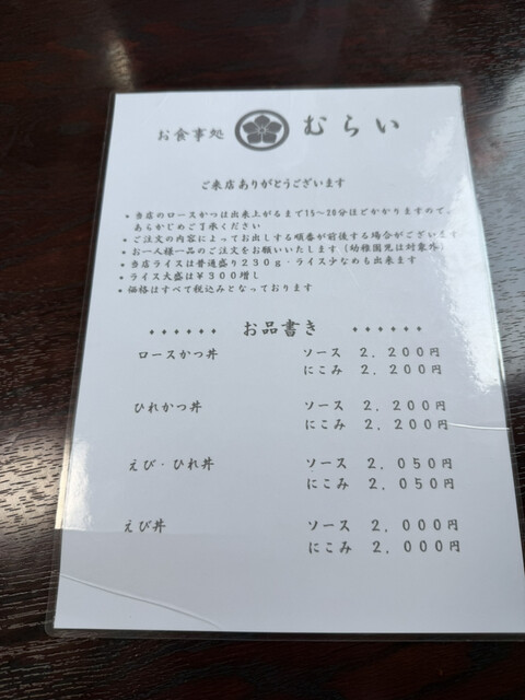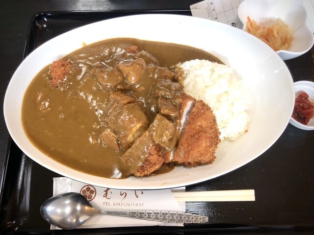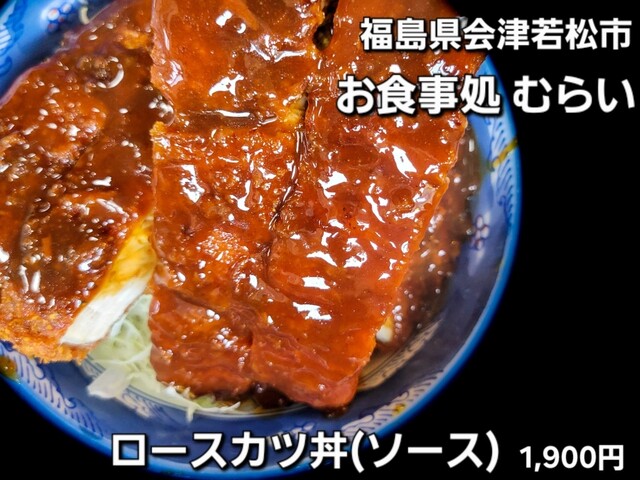 早めの昼食を会津若松市にて、ソースカツ丼人気店「むらい食堂」さんに伺いました。開店直後でしたので、店内には1名のお客さんのみ。店員さんにお好きな席を促されて着座。観光値段なのか?ヒレソースカツ丼が@2...