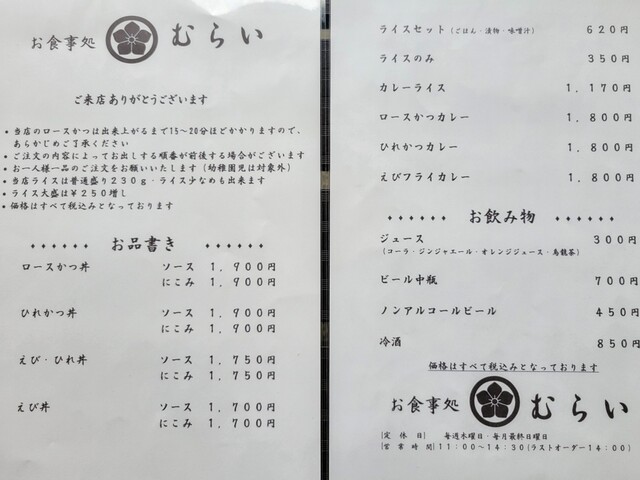 | ジャンル | かつ丼、とんかつ、カレー |
