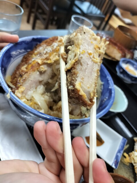 会津若松への家族旅行中、お昼の遅い時間にカツ丼で有名なお店へ。タイミングが良く、待たずに入店できました。