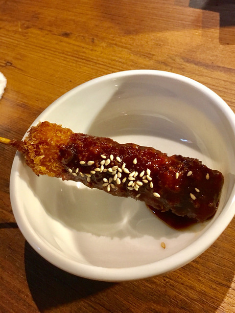ソース串カツは自分でウスターソースにつけるものでした。もう少しソースが染みた方が私は好みでした。