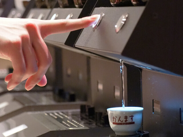 QRコードを機械にかざしてボタンを押せば日本酒が注がれます!