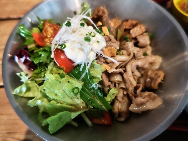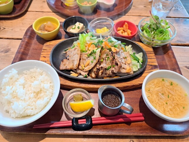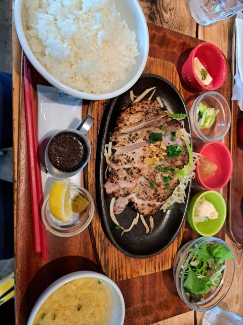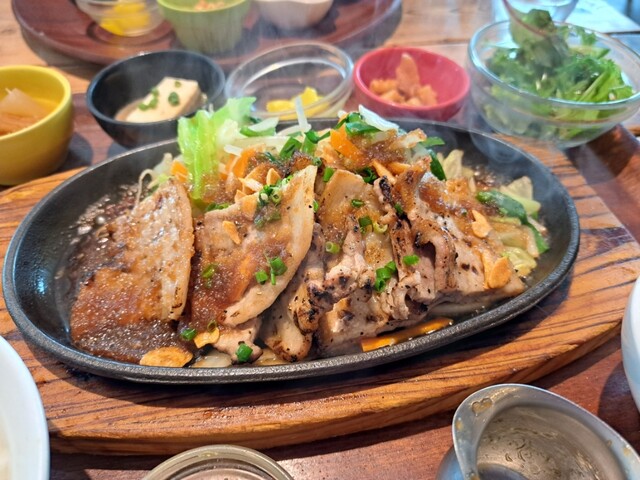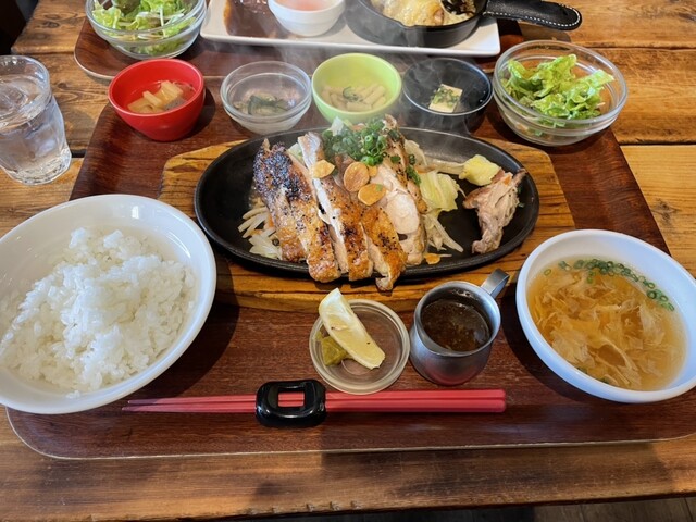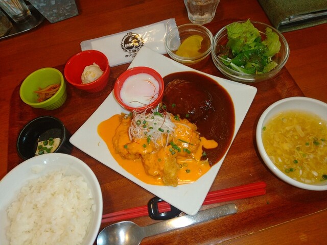 2度目です。 定食がワンプレートになって おかずも2種類選べます。 今回は妻と娘と三人で行きました。 それぞれに おかずを別々に選んだので ⚪︎メンチカツ ⚪︎おろしネギ鶏天 ⚪︎エビチリ ⚪︎地鶏唐揚げ ⚪︎豚クリームコロッケ ⚪︎焼きメンチ(デミグラスソース) の6品... 詳細を見る