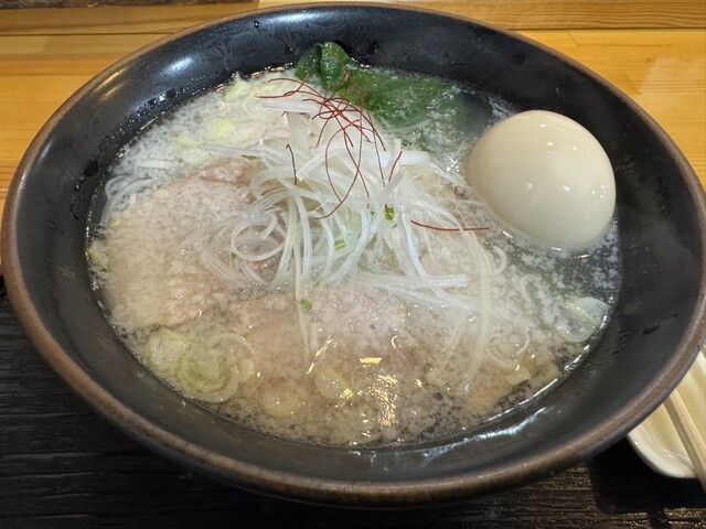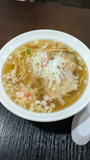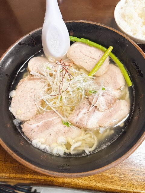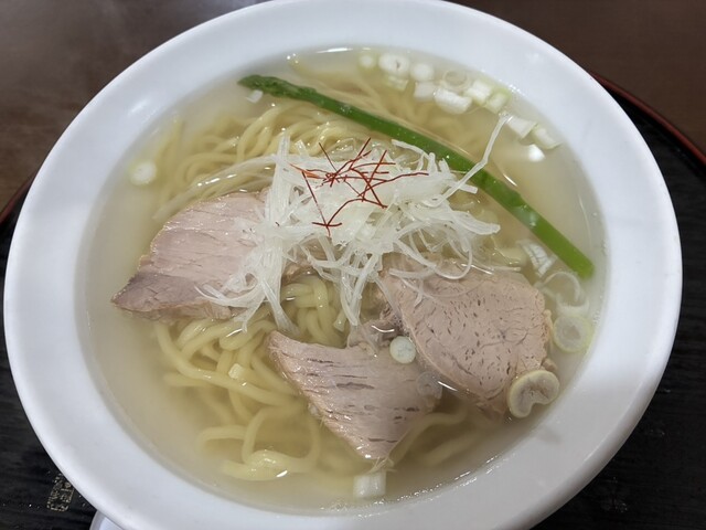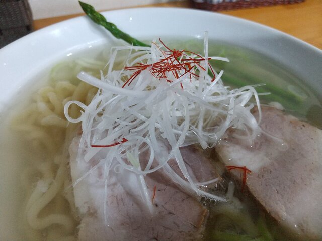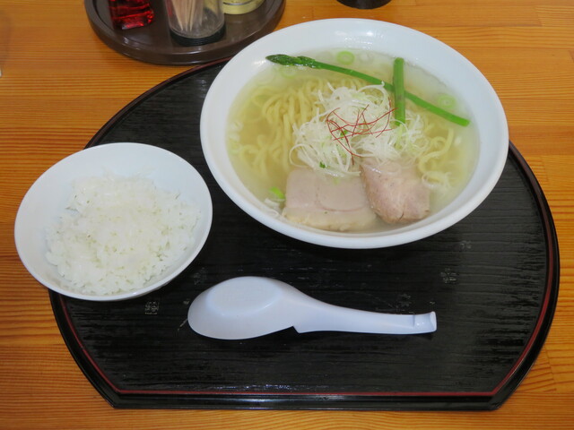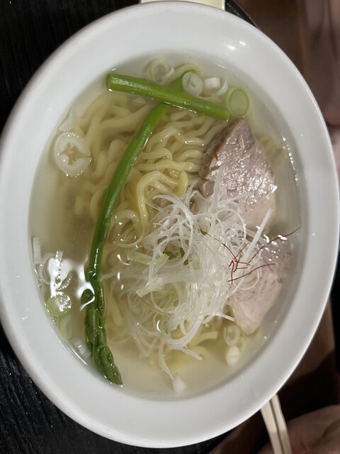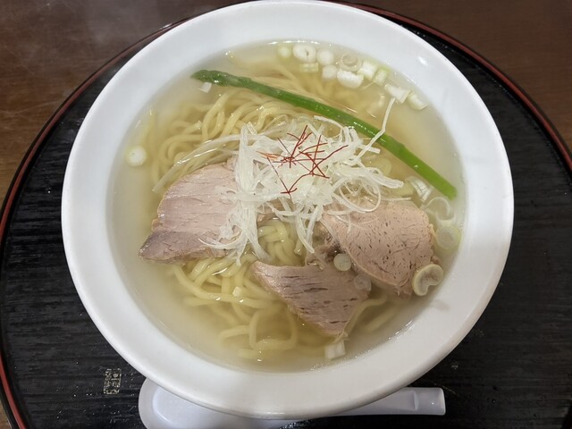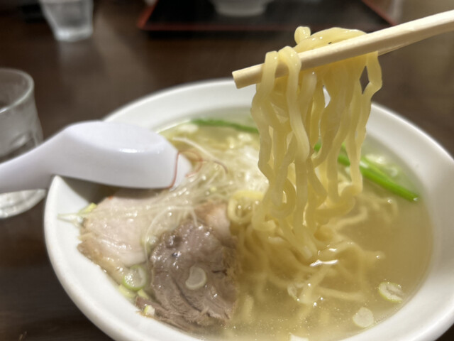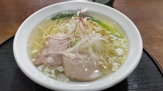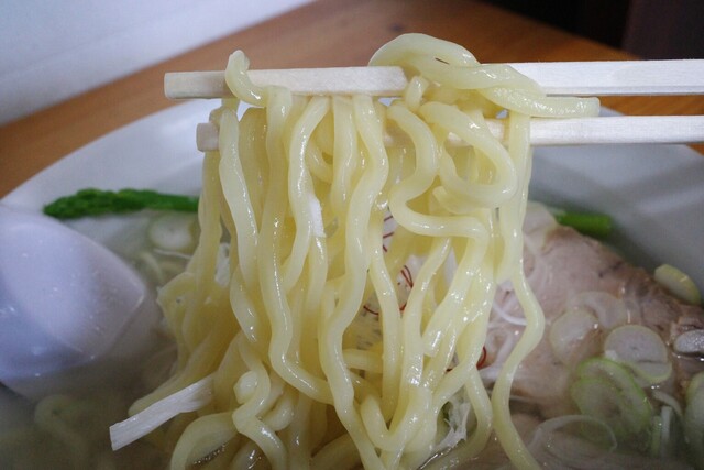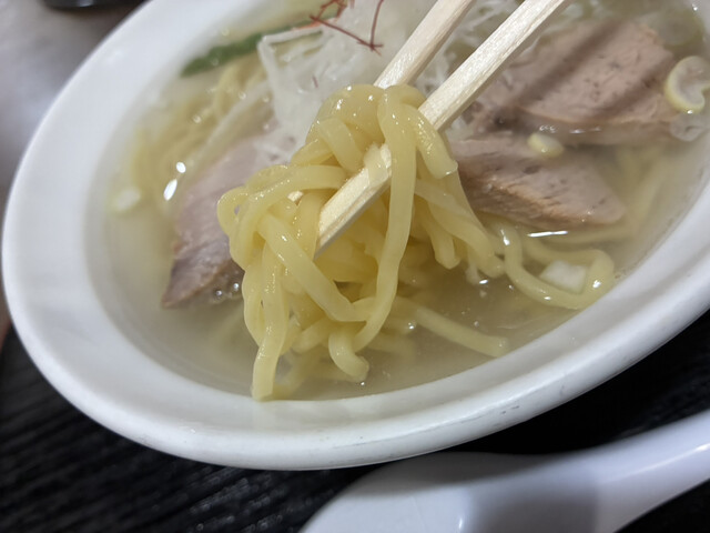 昆布と貝類の出汁が効いた淡麗な塩ラーメンです。少し太めのちぢれ麺がスープと...