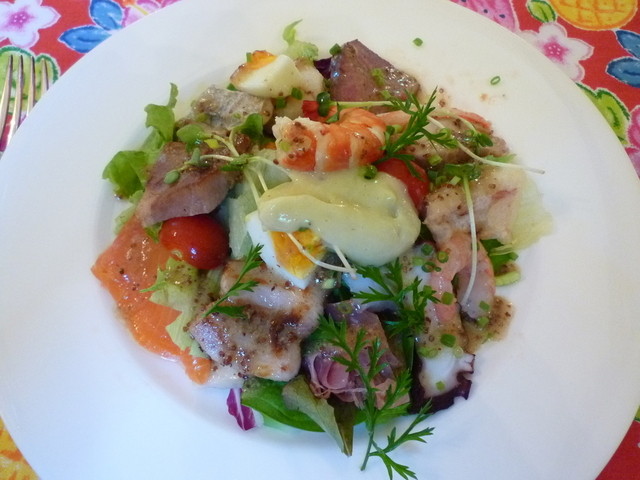 ランチにツレと訪問。 前回と同じく魚料理がメインのコースを頂きました。 最初は一口前菜。 タラモサラダをパイ生地で挟んでいます。 ぱりぱりとしたパイ生地とタラモサラダとの相性が良くてとても美味しかったです。 オードブルは 魚介とお肉が満載のサラダ。 魚介もお肉も、それぞれの... 詳細を見る