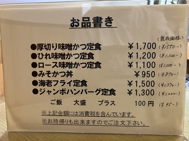平日の12時30分頃に訪問。店内は満パン。5分ほど待ち着席。厚切り味噌カツ1700円を注文。ご飯は普通盛りで他の店では大盛りレベルのボリューム。カツの味もよく、大きさもよくコスパ抜群。駐車場には県外の...