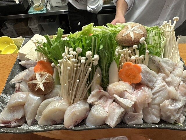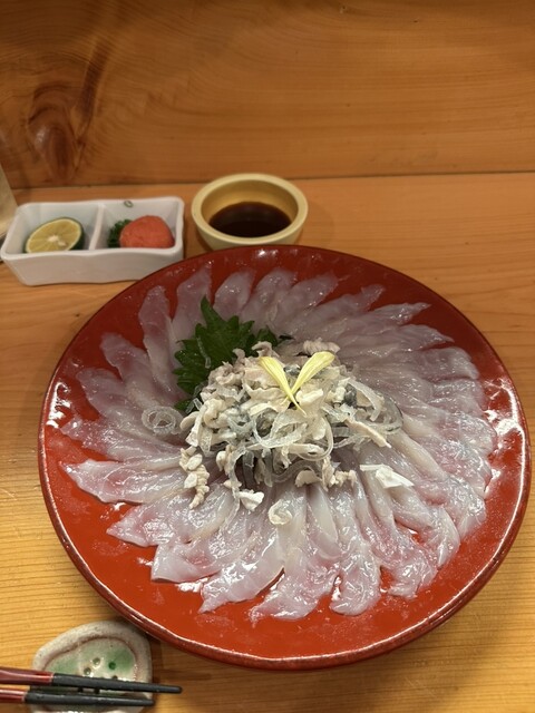 フグのフルコースを食べさせてもらえるとの事で予約して訪れました。値段的に養殖ではあると思いますが、これでもかというほどのフグ料理の数々でした。最初にてっさが大きな皿に一人一皿づつでてきました。とても圧...